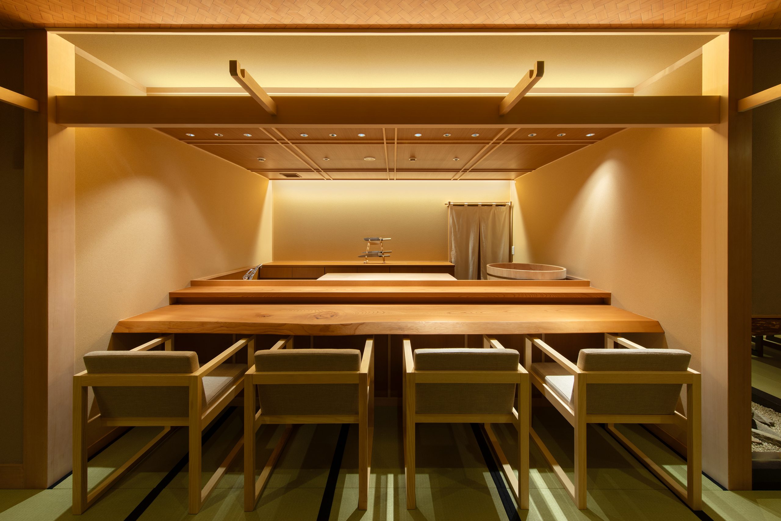 店名からも見て取れるように、万葉の詩をテーマとしたお店が要望でした。今回新たに設けたカウンター席は個室へ向かう導線に配置し、個室へは板場を横目に入る事が出来ます。また、個室にはそれぞれ万葉の詩にゆかりのある名前とその名にふさわしい趣の異なる空間を設ける事が出来たと思います。万葉の詩が息づく高岡の地で、大伴家持が愛した風景や四季の情景を映した空間。高岡の豊かな恵みを感じ、心ほどける空間。静かに温もりを灯す場所として多くの方に訪れて頂けたらと思います。